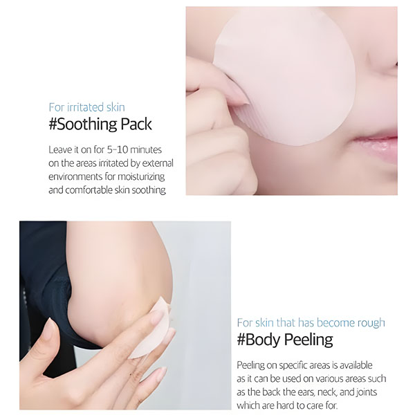يمكن ترك الوسادة على المناطق الجافة أو المتهيجة كقناع موضعي لمدة 5-10 دقائق.
