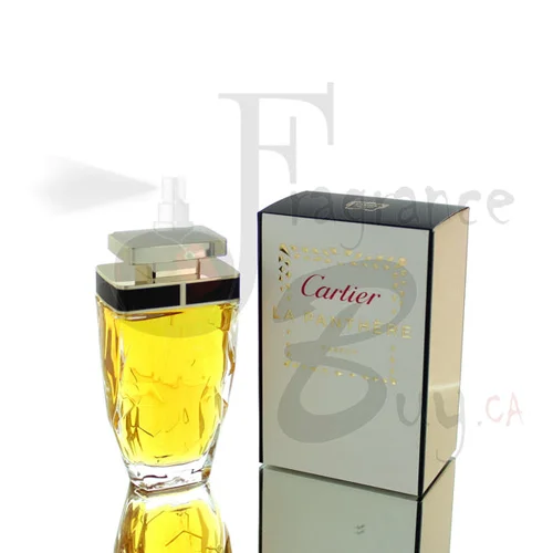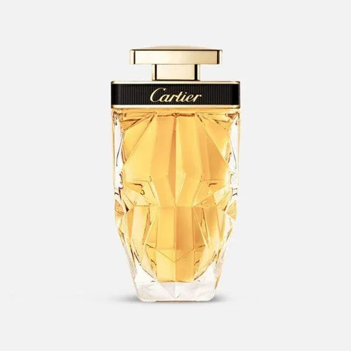 تتوج الزجاجة برأس نمر ذهبي، وهو رمز مميز لمجموعة عطور La Panthère.