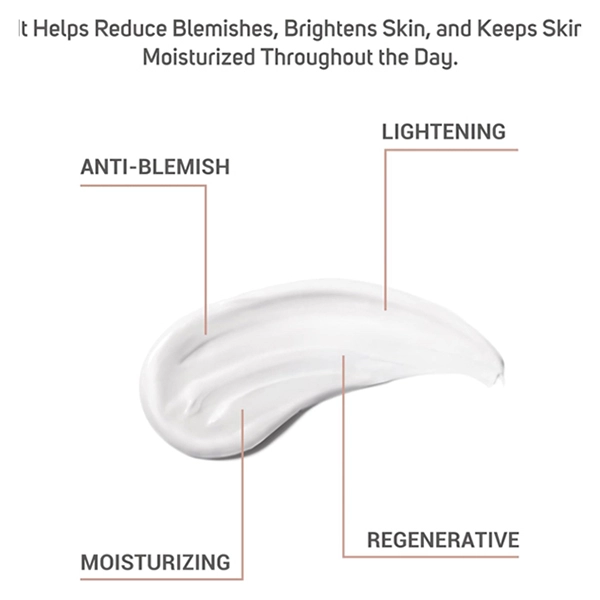يساعد على تفتيح المناطق غير المتجانسة ويحافظ على ترطيب البشرة طوال اليوم.