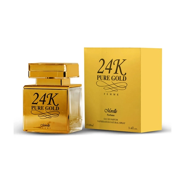24K Pure Gold Femme is a luxurious fragrance that blends oriental floral notes with warm woody touches, making it an ideal choice for women seeking a strong and captivating scent.