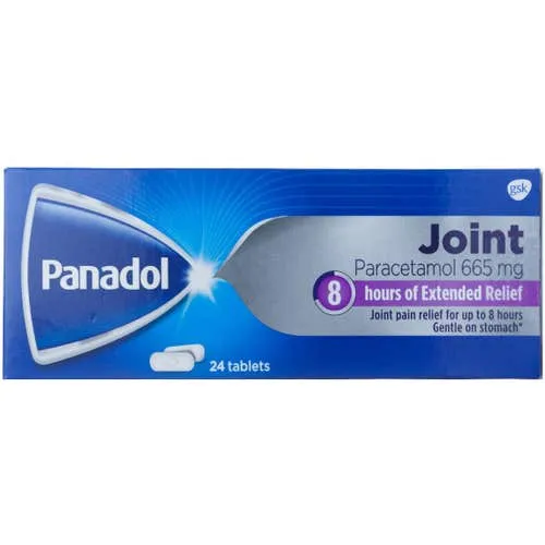 Medication name: Panadol Joint Tablets (24 tablets) contain Paracetamol (Acetaminophen) 665 mg per tablet, a pain reliever and fever reducer specially formulated for long-lasting relief of joint and muscle pain.
