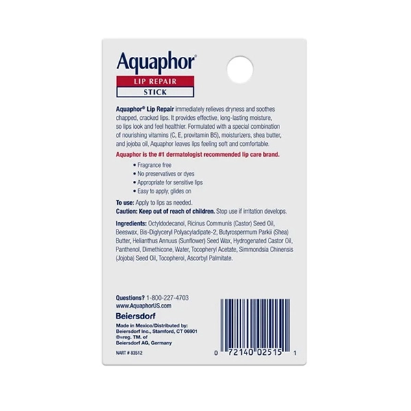 Aquaphor Lip Repair Stick for Dry and Cracked Lips, 4.8 gm