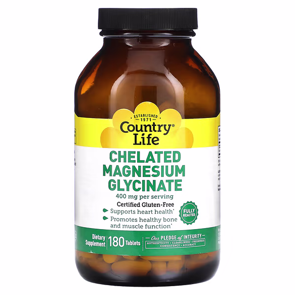 Country Life, Chelated Magnesium Glycinate, 180 Tablets 133 mg per Tablet