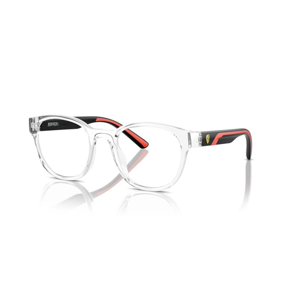 Integrated Logo: The famous Prancing Horse logo or the Scuderia Ferrari name is often incorporated onto the temples of the glasses. In the transparent color, the logo may be a subtle metallic hue or a simple dark color that stands out from within the transparent acetate material, adding a luxurious and thoughtful touch.