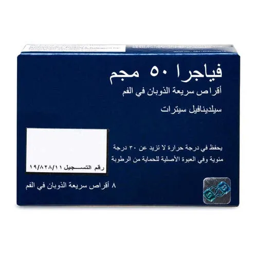 Medication name: Viagra 50 mg Orodispersible Tablets (8 pcs) contain Sildenafil citrate, a phosphodiesterase type 5 (PDE5) inhibitor used to treat erectile dysfunction (ED) in adult men.